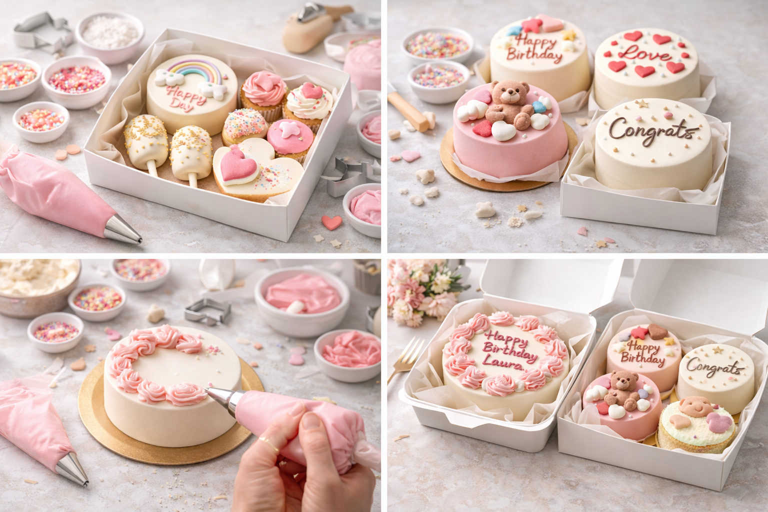 Les bento cakes se prêtent très bien à une production en série : même base, couleurs variables, messages personnalisés. C’est idéal pour des offres saisonnières, des éditions limitées ou des collections à thème.