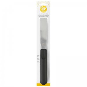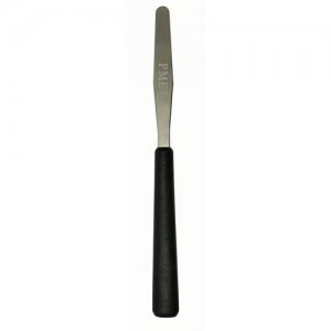 - la spatule droite sert à étaler la couche de couverture sur le pourtour du gâteau et à le rendre bien lisse. Cette étape est indispensable avant d’y déposer la pâte à sucre. Utiliser une spatule en inox a plusieurs avantages. Le métal se nettoie bien et dure longtemps. On peut également chauffer la spatule pour éliminer les dernières imperfections après avoir laissé refroidir le gâteau au réfrigérateur ;