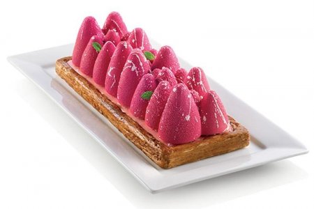 Verser le caramel crémeux dans le moule décoratif du kit Ice Glow. Fermer avec le gâteau et congeler pendant 6 heures. Déformer obtenir l’insert parfait. Verser une couche de mousse de vanille et de gingembre dans le moule décoratif, placer l’insert. Niveau. Congeler pendant au moins 6 heures. Déballer et pulvériser avec le spray à effet velours rouge. Placer sur la base du streusel recomposé et gelée.